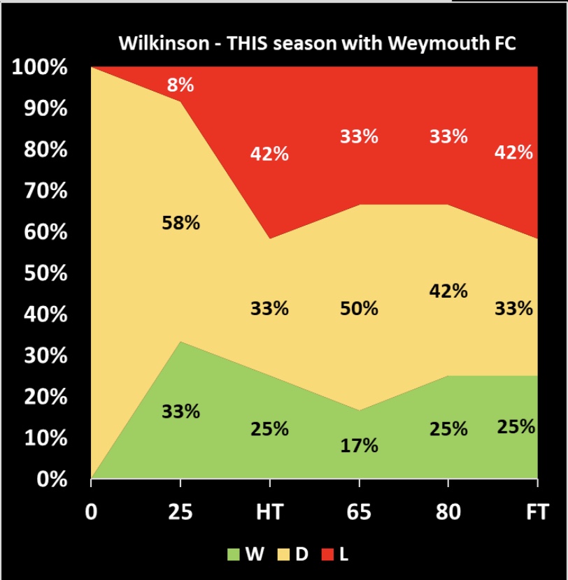 In our previous Wilkinson campaign only 2 of the 12 games were were level in at 80mins remained that way at the final whistle. We went on to win 4 and draw 6 for the draw percentage to drop by two thirds in a short space of time.