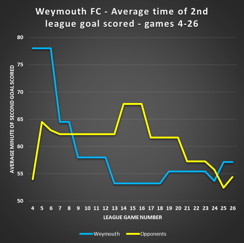 In fact our rivals have now overtaken us again in terms of time of second goal scored…