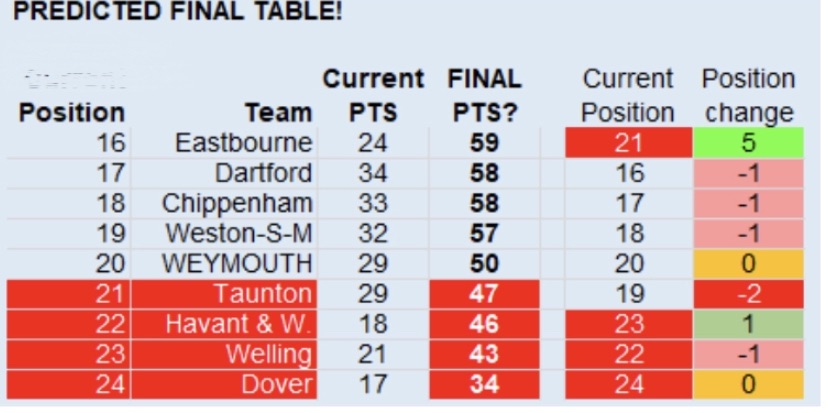 But that is not the end is it dear reader as I then guessed who would go down when Weymouth had 20 games to go.