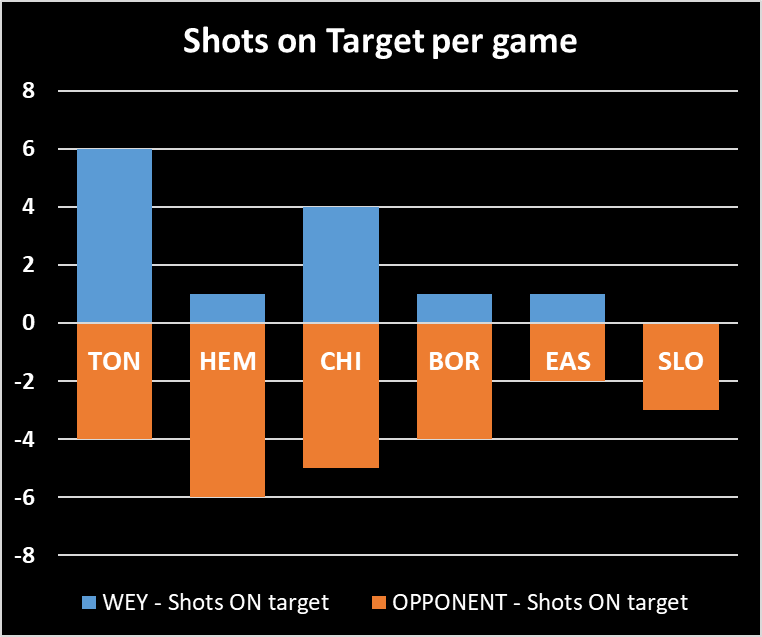 If we just look at the Weymouth games so far it also looks good initially until you drill down a little more.
